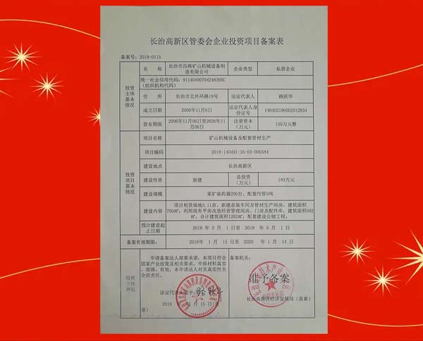 長治高新區(qū)管委會企業(yè)投資項目備案表