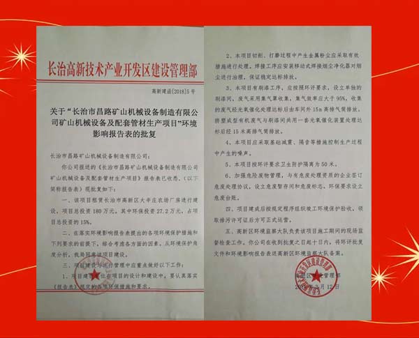 榮獲長治高新區(qū)環(huán)境影響報告表的批復
